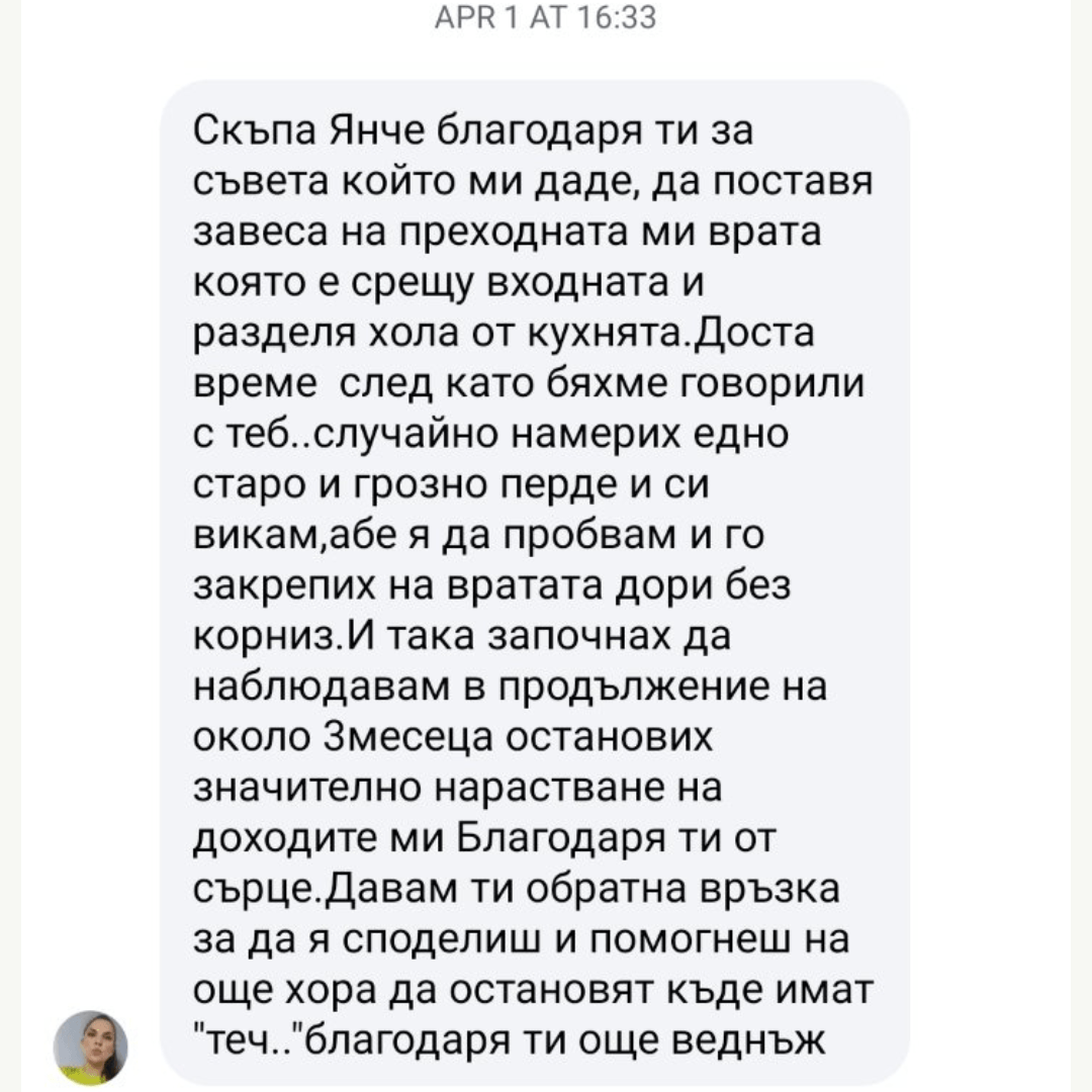 Създадох "Хармония", защото видях къде най-често се крият грешките в нашите домове. Ще можеш веднага да приложиш наученото и да коригираш енергийния застой, за да привлечеш повече пари, здраве и хармония. Също така, ако ти предстои ремонт в дома, ще разбереш как правилно трябва да подредиш всяко едно от тези помещения: кухня, баня и спалня!